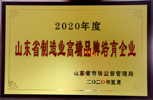 2020年5月8日,由中共山东省委宣传部、山东省发展和改革委员会、山东省市场监督管理局、烟台市人民政府共同主办的山东省2020年“中国品牌日”活动在烟台举行,公司入选2020年度山东省高端品牌培育企业名单。