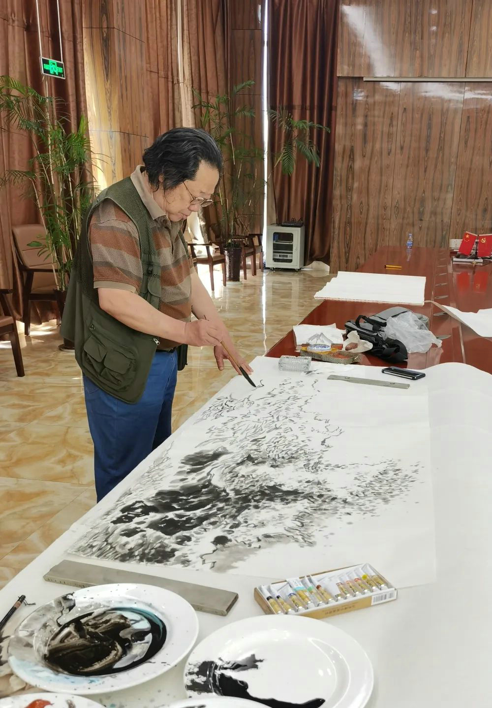 2022年5月21日,由日照日报社、日照新闻书画院共同举办的“海曲•绘”活动,邀请秦绪堂、陶安金两位日照书画名家来6776永利集团集团,以海洋发展为底色,创作了一批优秀书画作品。