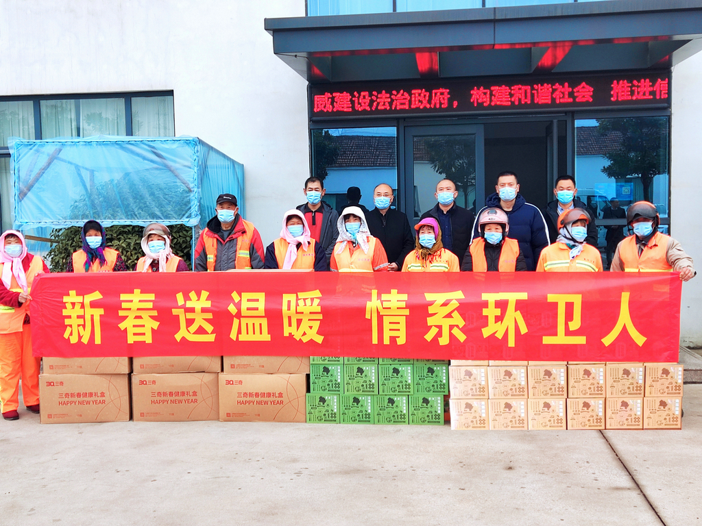 声声问候显真情,句句祝福暖人心。活动现场,集团党委郭副书记代表集团公司向环卫工人捐赠了防疫礼盒、海洋健康食品三宝菜、海藻面等物资,总价值39000余元。