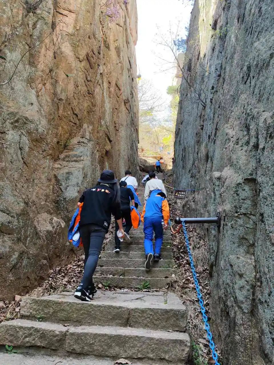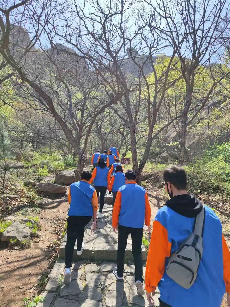 10点到达五莲山风景区西门口,大家在景区的正门台阶前留念合影,并对登山安全注意事项进行了强调提醒。开始爬山啦!大家个个精神抖擞、意气风发,朝着山顶奋力前进。尽管有个别伙伴由于身体原因使登山的脚步慢了下来,但他们互相加油打气,继续向登顶的目标努力着。约1个半小时后,所有人员全部到达峰顶。山风阵阵吹来,吹干了攀登过程中留下的汗水,我们放眼望去,山中所有美景尽收眼底,漫山松翠,层林尽染,格外动人。